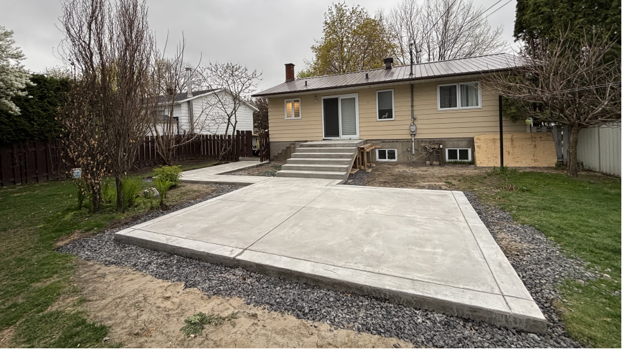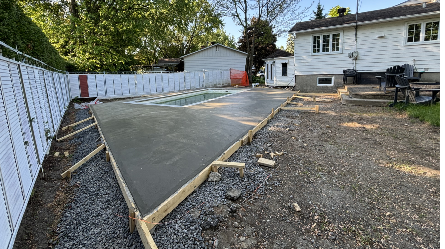 Piscine creusée finie et trottoir en béton ...